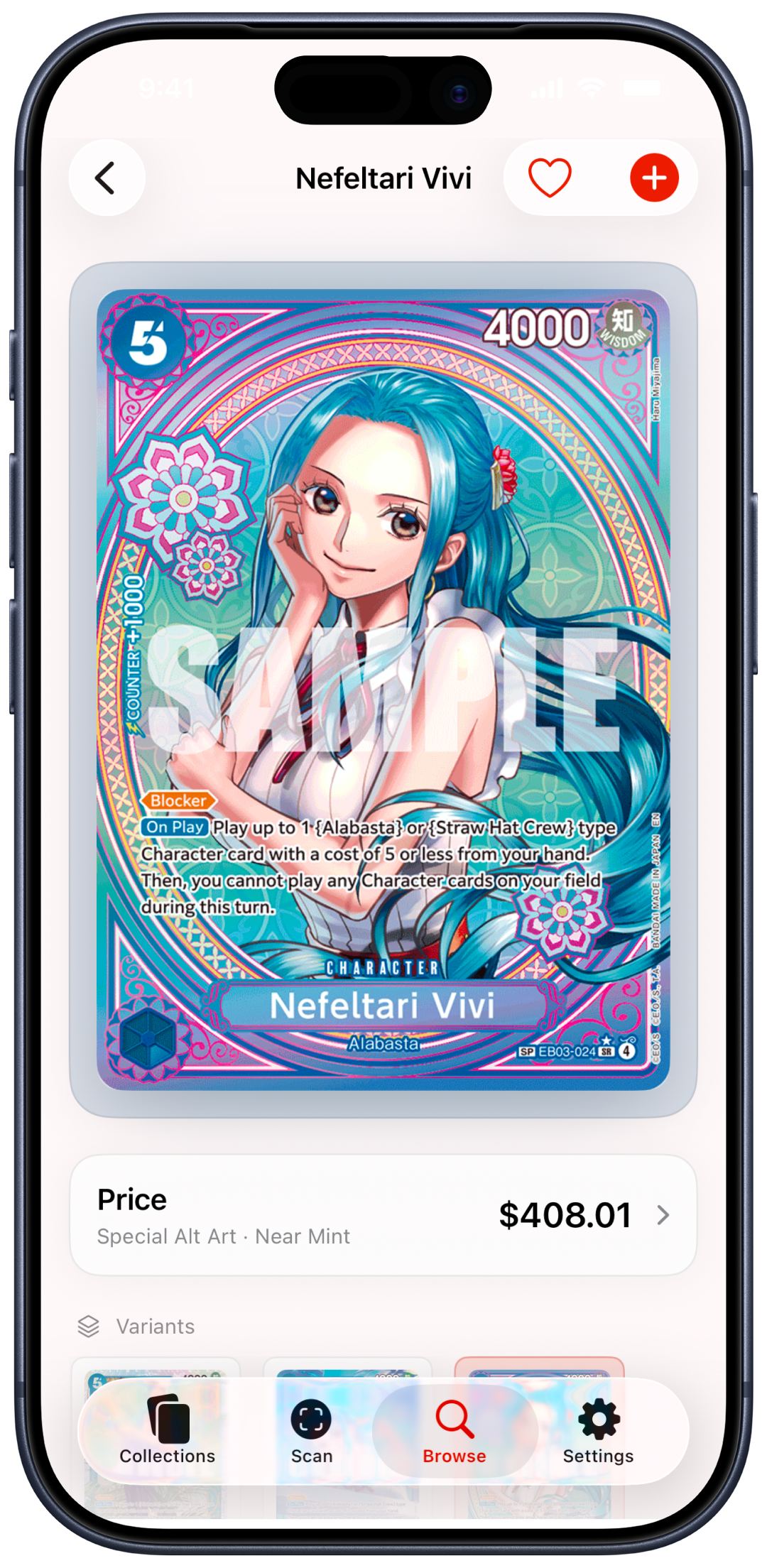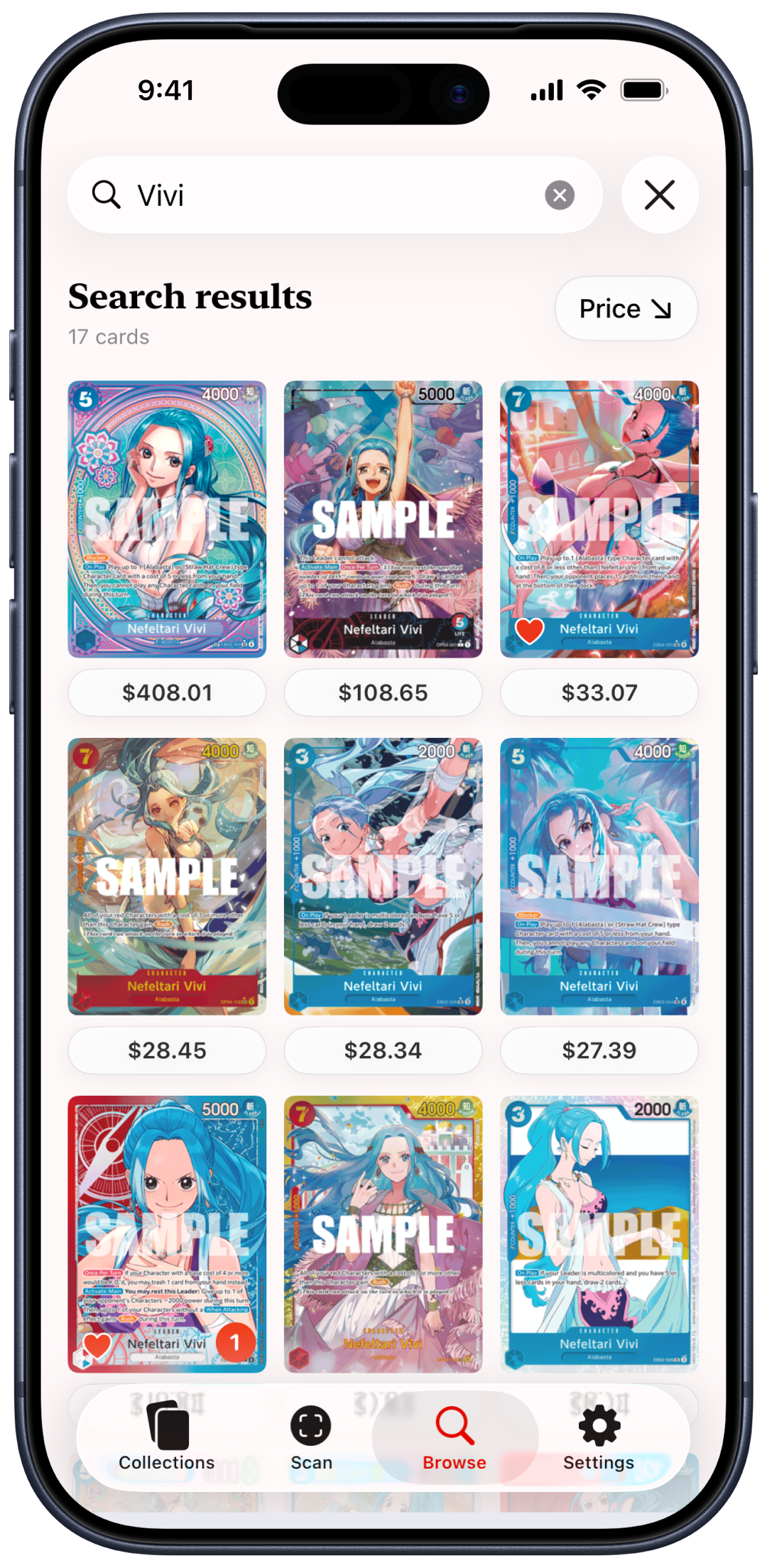 Scan One Piece cards, check market value, and manage your collection and wishlist with no account or login required.